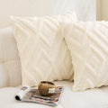 F9 Sonive Cushion Covers 40x40cm Set of 2 Decorative Pillow Covers Knitted Jacquard Square Neutral Pillowcases with Invisible Zipper for Sofa Couch Bedroom White
